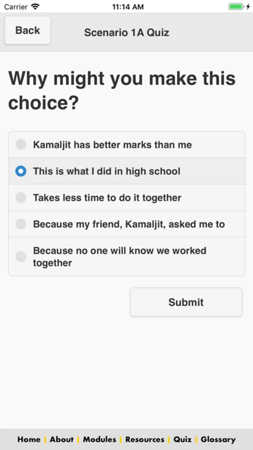 The modules in this tutorial provide examples to illustrate the expectations of an academic community. Keep in mind, these are just a few scenarios and are not all-inclusive. For specific details please review your institution’s academic policies.