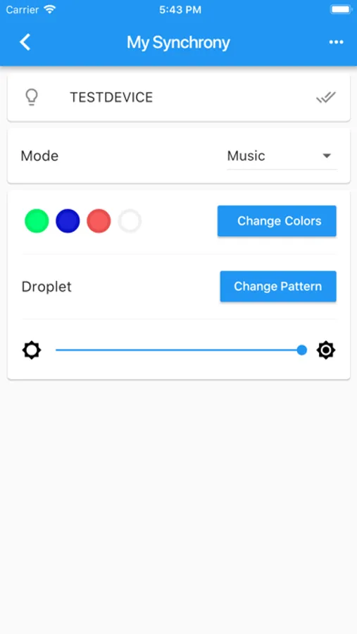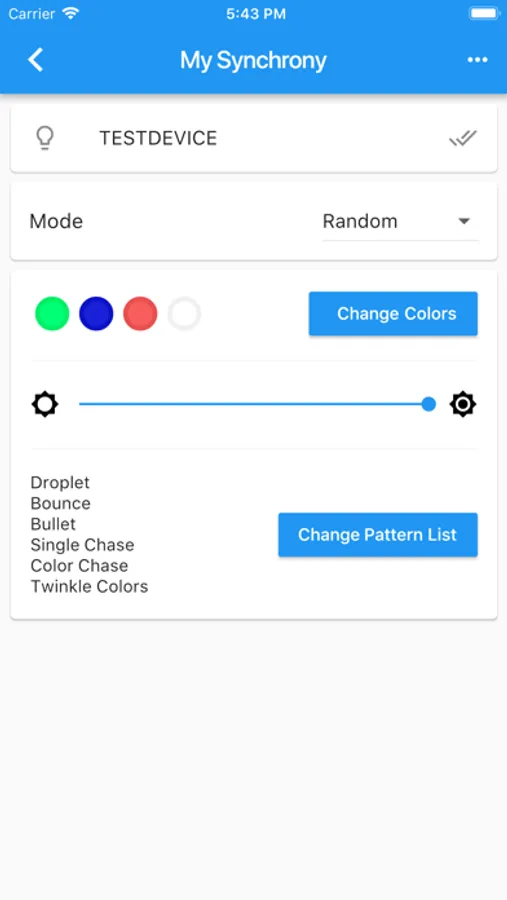 The Synchrony™ LEDs App lets you operate the Synchrony™ LEDs controller remotely via Bluetooth using your iPhone, iPod Touch, or iPad. You can choose colors and patterns for your LED lightshow as you do with the buttons on the control box. Additionally, you can use the app to customize color sets, and activate display modes that don't require music. The control box remembers the settings made using the app after it is powered off.