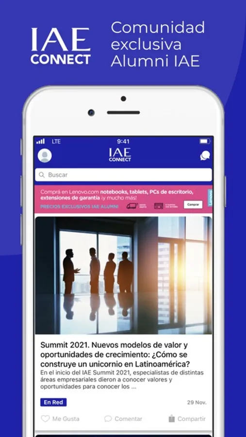 Con la aplicación de IAE Alumni, podrás definir tus temas de interés, enterarte sobre eventos, encuentros y novedades que la red de alumni vaya generando.