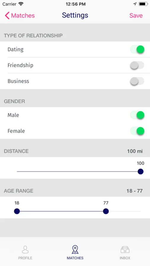 After filling up the your setting of what you are looking for, category:Business, Friendship or dating, distance gender and age, and your profile or page,