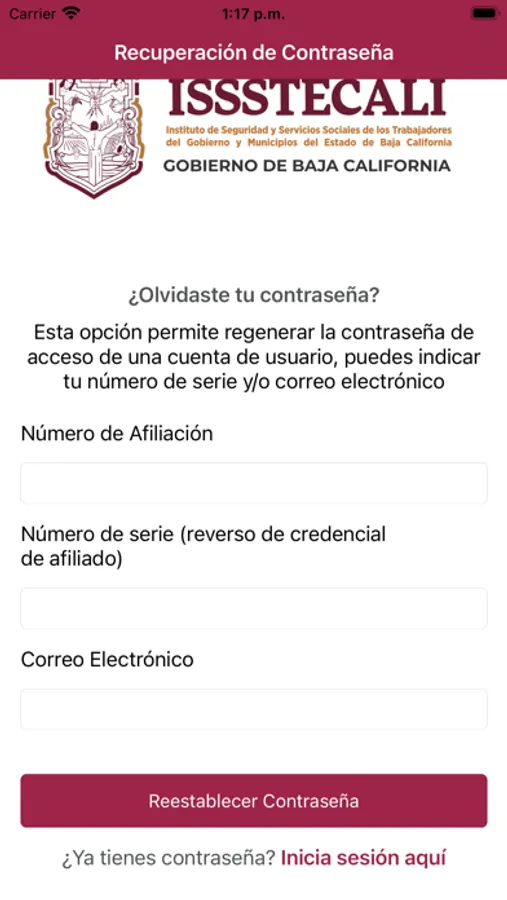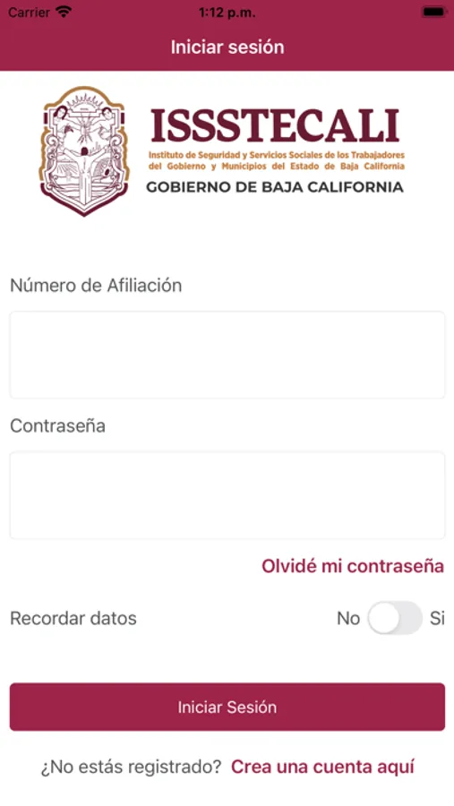 Para iniciar sesión es necesario crear una cuenta en la misma aplicación. También se puede utilizar la contraseña que se obtiene al momento de registrarse en el servicio de citas web, http://servicios.issstecali.gob.mx/SISA/Account/Registrarse