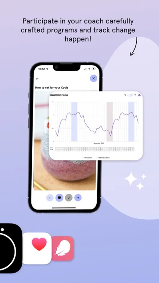 Don’t have one yet? We’ve got you. You can track all you want in floka and find this right one when you are ready. Connect with holistic health coaches and professionals like naturopathic doctors, nutritionists and certified health and fertility coaches, and other experts. The type of coach attracted to flöka is all about going deep, and we are so proud of our coaching community's impact.