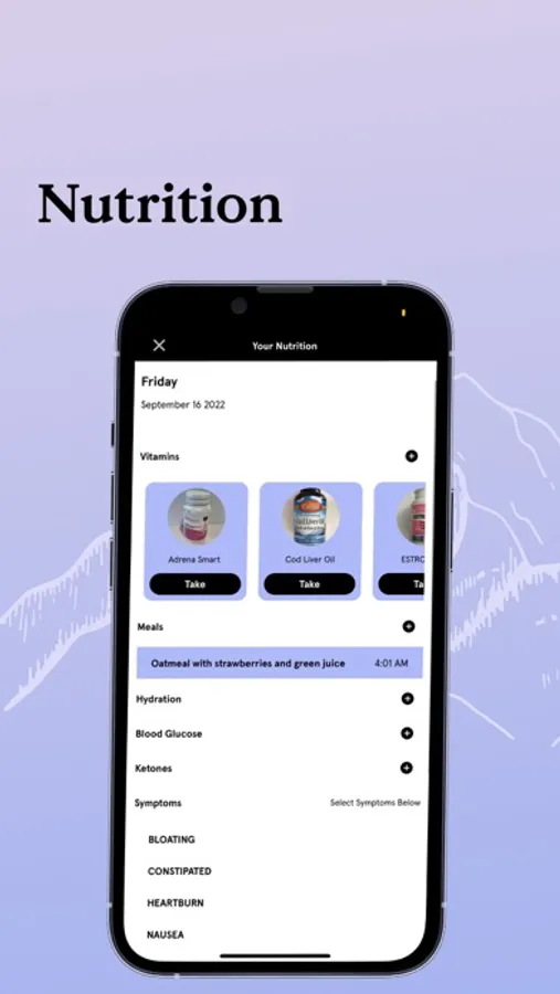 Symptoms, Fitness, Sleep, Periods, Meals, Vitamins, BBT, Weight, Skin, Moods, Mindfulness, Pain, Skincare and more