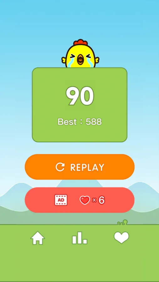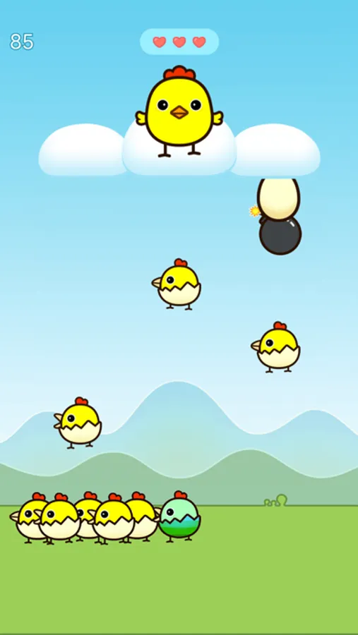 Happy mrs chicken Molly is on the cloud now! She will lay eggs which will be falling down to the ground and broken. What a pity! Poor mrs chicken Molly, poor eggs... But you can save these eggs! Just touch them before they hit the ground! The eggs will hatch little chicks. What a happy time!