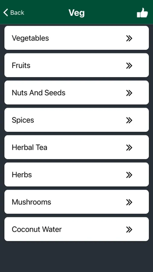 Nutrition Facts Food Guide app provides Nutritions and Health benefits for different Categories: