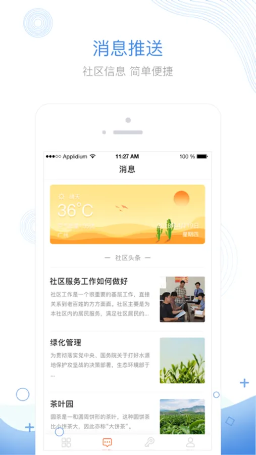 掌居宝物业版APP是一款基于物联网、云计算、互联网等技术打造的社区服务软件,具有智能门禁、故障报修、班表管理等功能,可实现小区的全面管理及运营,为物业和业主开启智慧新生活。