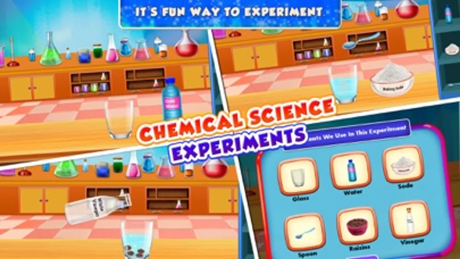 So Kids get ready and let's enter into the amazing world of learning science experiments kids school where kids will learn different experiments with learning science experiments game. Perform some amazing chemistry lab experiments in this science experiment with chemicals for kids and see the amazing chemical & other materials reactions in your own High School Science Chemistry Class Experiments.