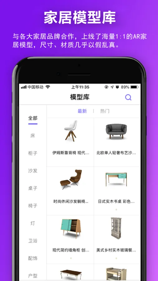 通过AR技术,用户可以将虚拟家居叠加到现实场景中,真正实现把家居“搬”到家里,实现前所未有的看家居体验。