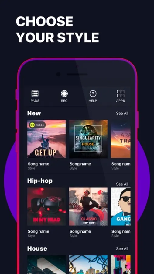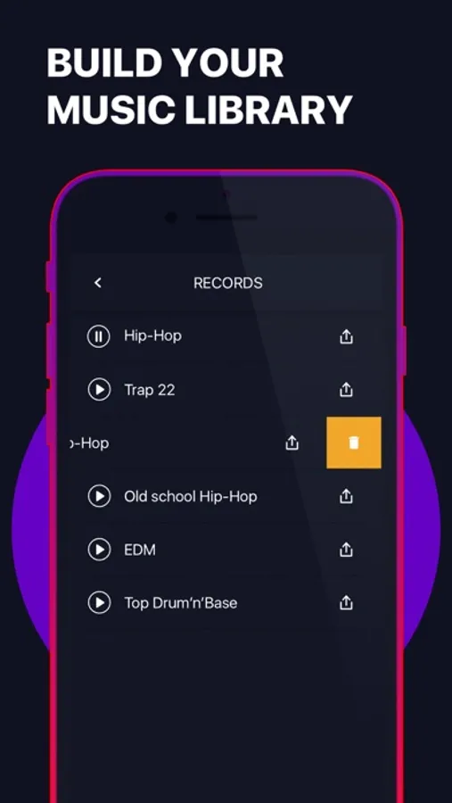 Music Mix Maker is perfect for anyone: from beginners to music pros. The app has huge variety of professional sample packs that will help you sound as awesome as top producers. With our app you can play around with different sound effects: drums, guitar, percussion – anything you feel like adding to your music.