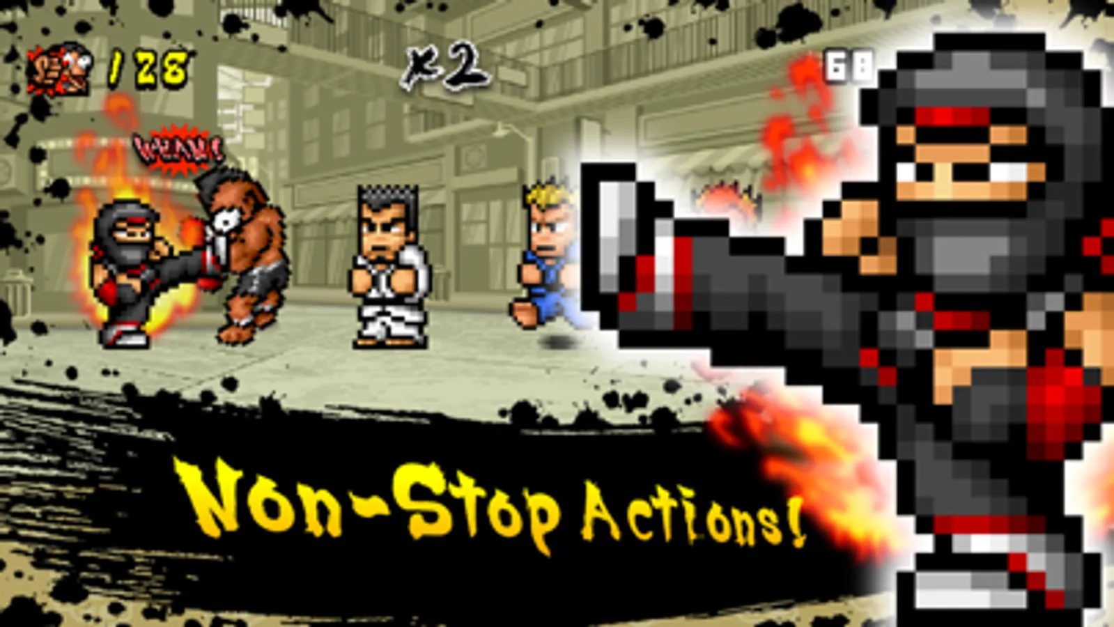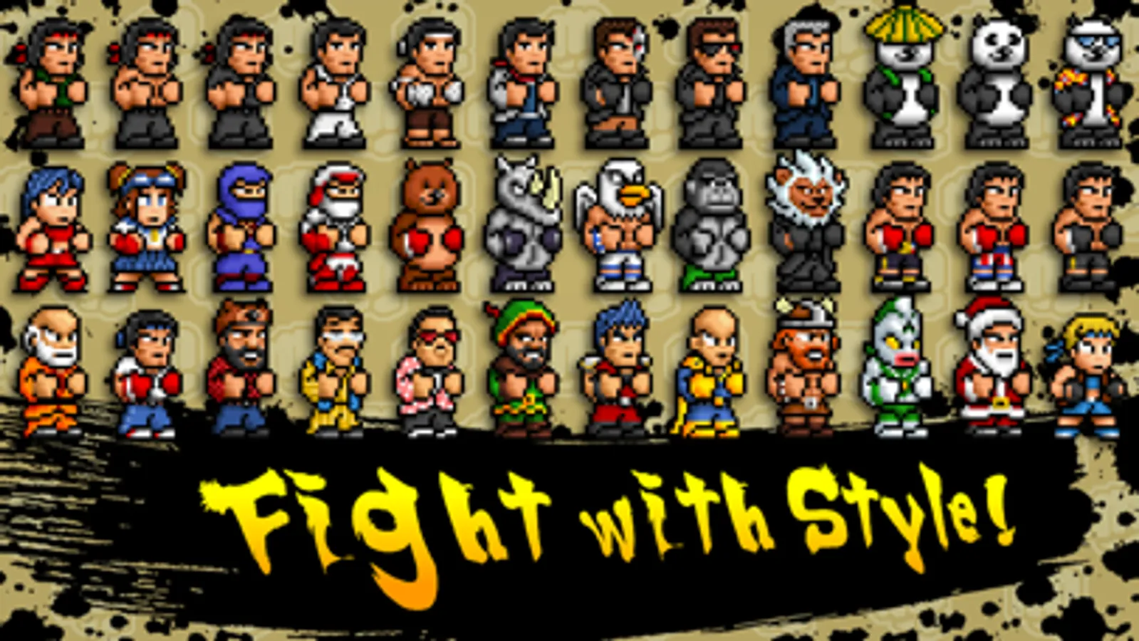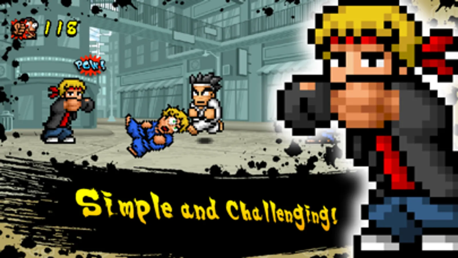 A fast paced endless finger tapping beat'em up game with up to 40 different characters available for unlock.
