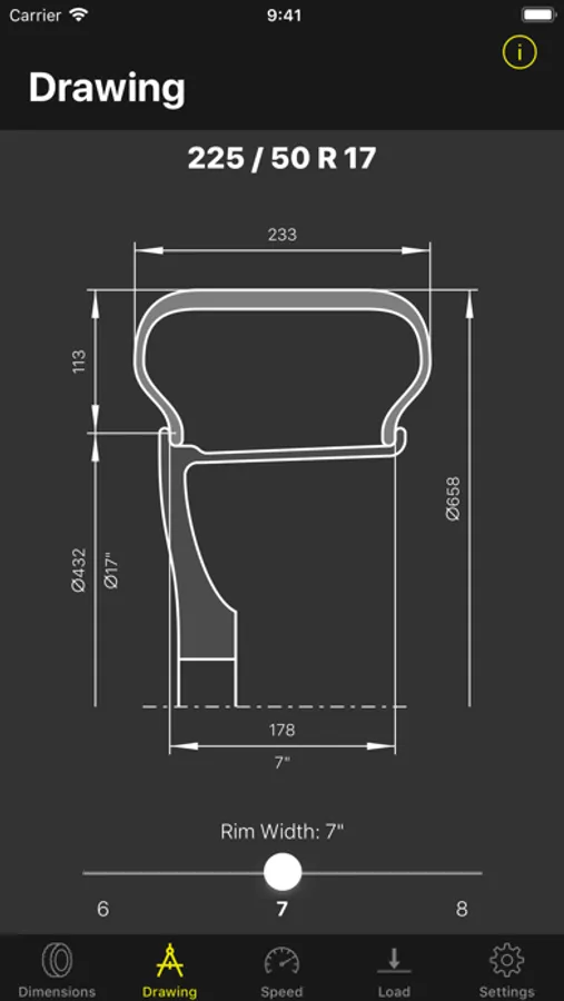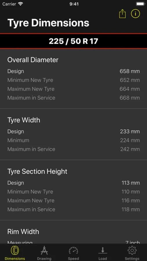 Tyre Dimensions calculates following dimensions of passenger car summer tyres according to the Engineering Design Information EDI of the European Tyre and Rim Technical Organization E.T.R.T.O.: