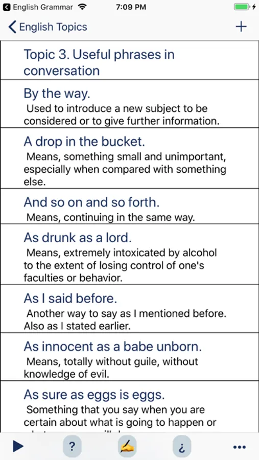 With "English Offline Audio Topics" app you can read and write, listen, pass tests and learn faster, in result you will get fun and obtain more knowledge!