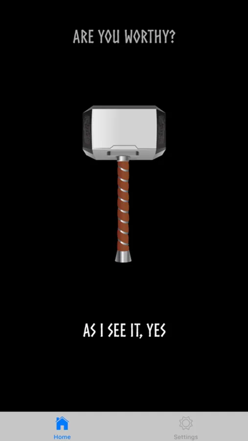 Are You Worthy to lift Thor's Hammer Mjolnir? Touch the hammer to get one of twenty responses. Your answer could be Yes, or No, or someplace in-between.