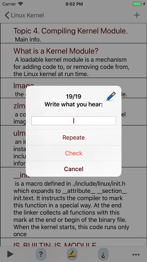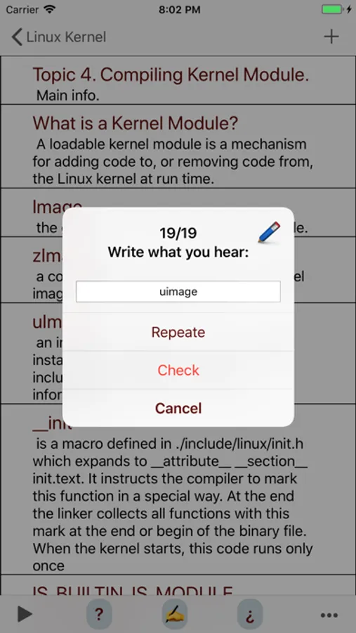 With "Linux Kernel Interview" app you can read and write, listen, pass tests and learn faster, in result you will get fun and obtain more knowledge!