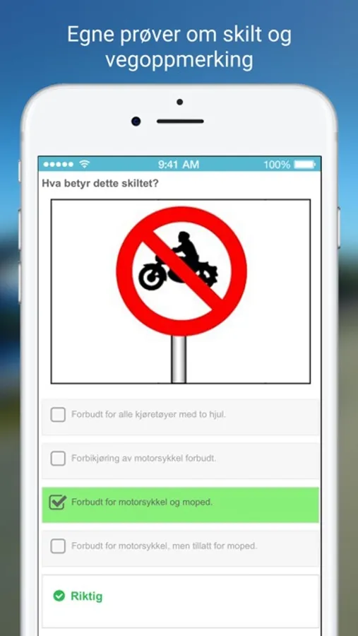 Med denne appen kan du øve deg på oppgaver tilsvarende de du vil få på teoriprøven. Appen krever INGEN innlogging, har INGEN ekstrakostnader og du får tilgang til alle oppgavene for ALLTID.