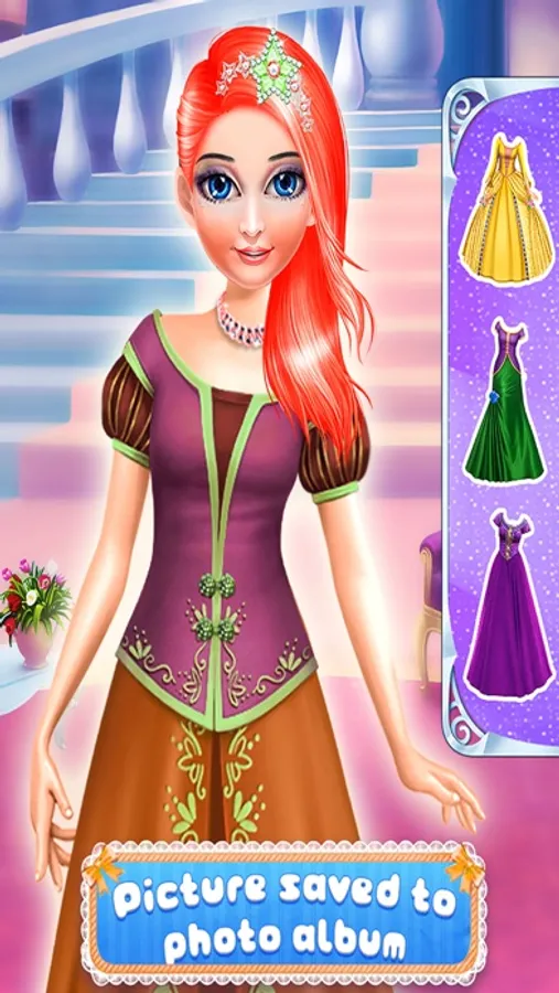 Design a unique outfit or a dancing costume for each of the girl princesses from over many items, accessories and hairstyles. petticoats, dress.