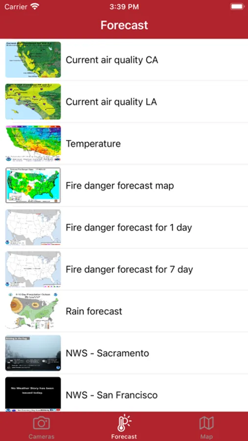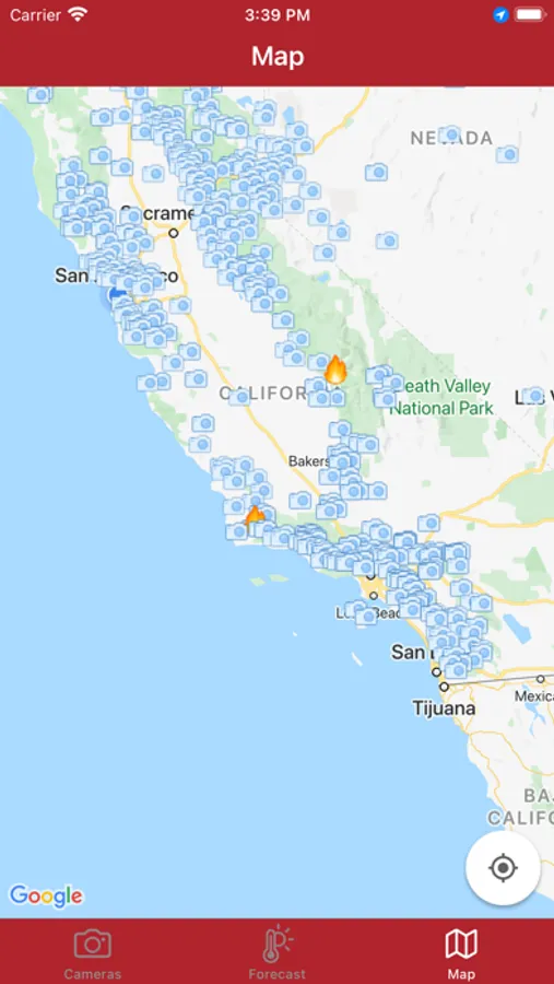 The app is designed to view fire cameras California. The megapixel cameras show the current state of the environment in California. Also there is a weather forecast, fire forecast and location of fires on the map.