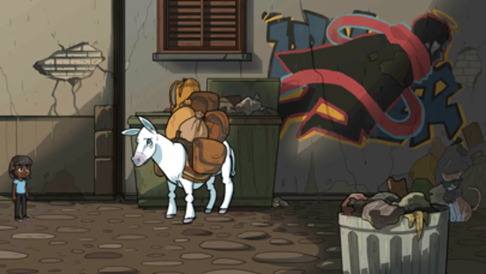 The game follows the adventures of a young child, designed by the player, on the way to school. Our player meets a white donkey struggling with heavy packages. The donkey, asks the player to help him and sends the player through a portal to a magical journey. Our player needs to solve riddles in different worlds, each nested in a setting inspired by Jewish history or sources. Each world represents a different set of values: Social justice, optimism, environmentalism, learning etc. Each world is filled with hidden motifs and symbols drawn from Jewish culture, from cultural heroes to legends and myth.