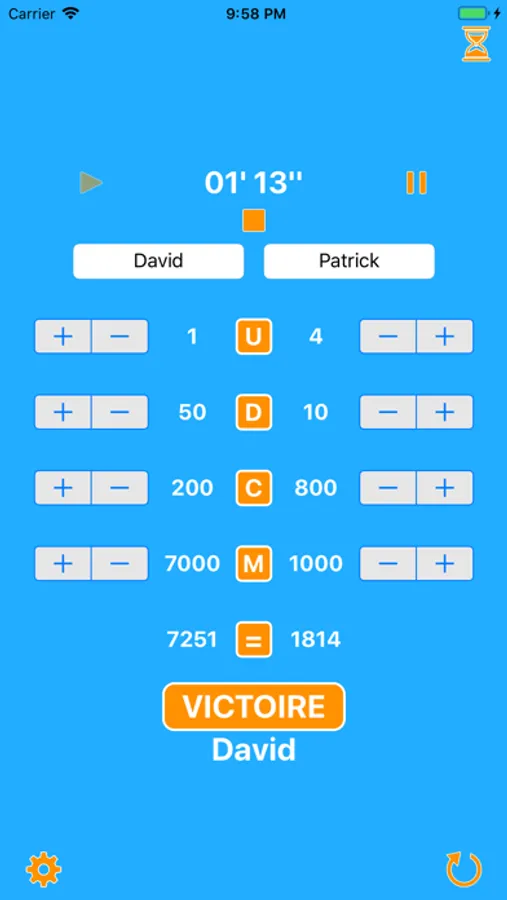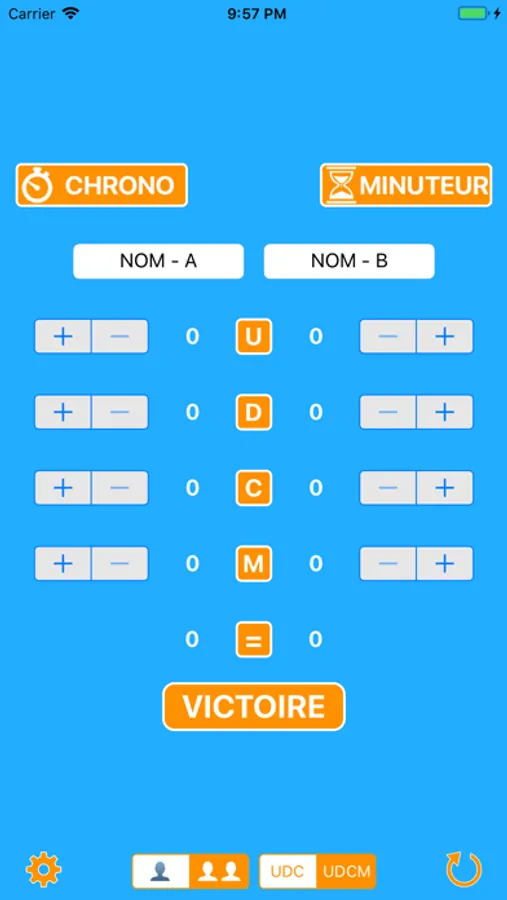 Le Compteur UDC - Unités, Dizaines, Centaines permet d’observer 1 ou 2 joueurs/équipes avec la possibilité d'utiliser le chronomètre ou le minuteur.