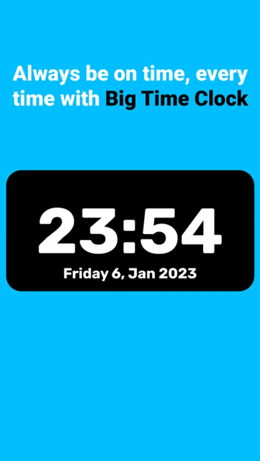 Discover the ultimate full screen time and date display solution with Big Time Clock. A simple user friendly app that provides a full screen display of the current date and time.