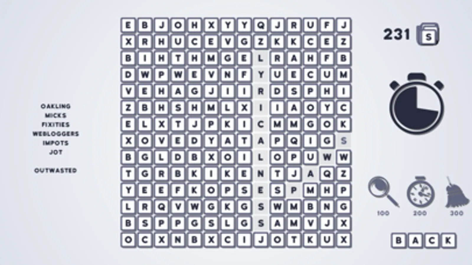 Rosette and Words is a crossword game puzzle where you must find words in a board full of letter tiles. On each level, you are provided with a list of words to find in a specific amount of time.