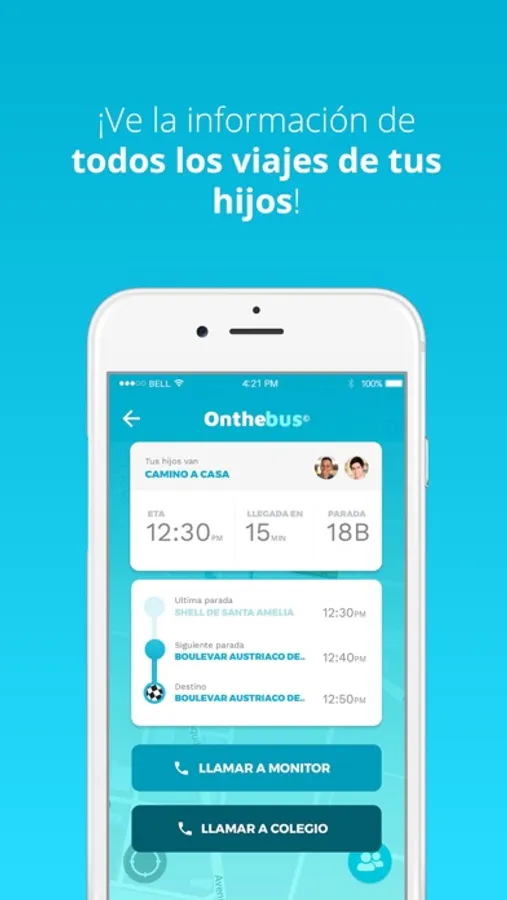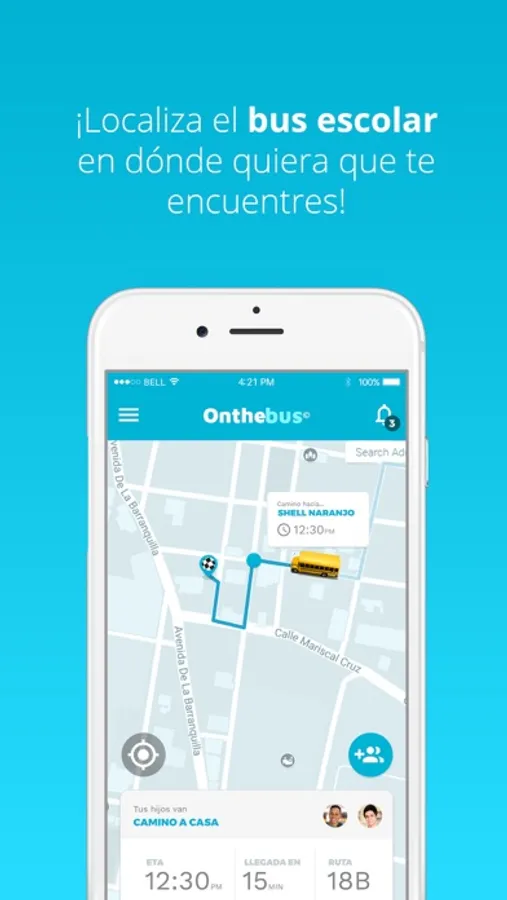 OnTheBus es una aplicación fácil de usar para tracking the buses escolares. Da la habilidad de localizar el bus a los padres de familia. Muestra en que parte del mapa se encuentra el bus, y permite a los padres saber con precisión la hora de llegada del bus. De esta manera, los niños no tendrán que esperar en la parada por grandes cantidades de tiempo y los colegios tendrán un mayor control y comunicación con sus buses. Toda la información es protegida y encriptada para que los padres solo sepan la ubicación del bus de sus hijos.