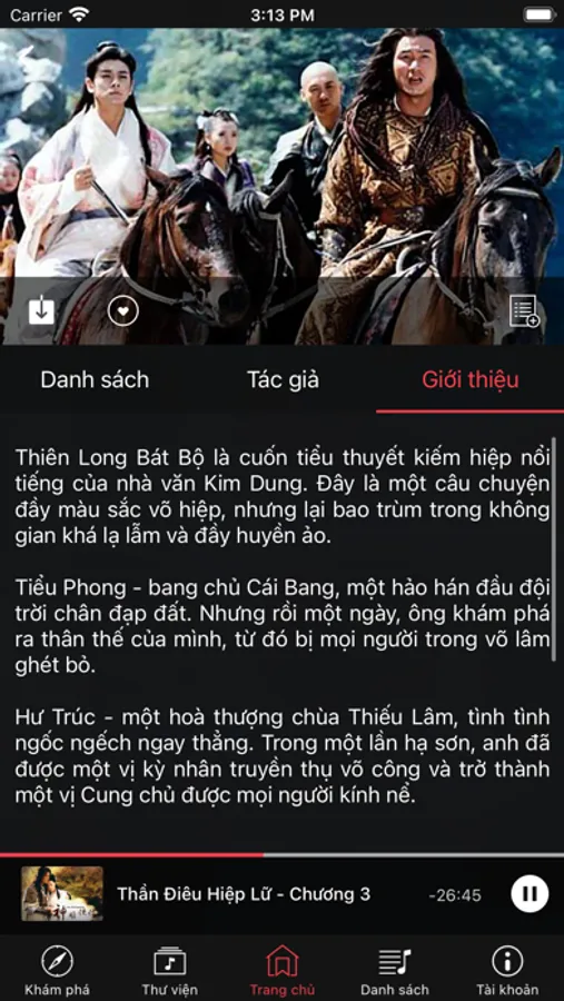 Ứng dụng “Truyện kiếm hiệp” là ứng dụng tổng hợp những truyện kiếm hiệp hay, chọn lọc, cùng những tình tiết ly kỳ, hấp dẫn được hiện thực hóa qua nhiều giọng đọc đầy cuốn hút.