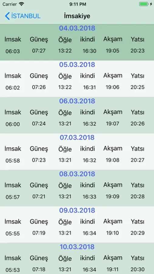 Günlük ve aylık namaz vakitlerini diyanet'e göre gösterir
