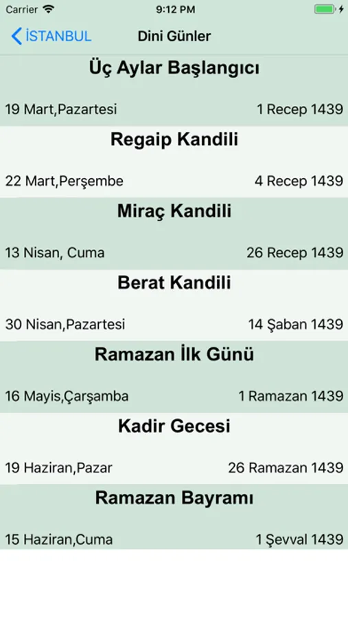 Dini günlerin yıllık listesi oluşturulmuştur.