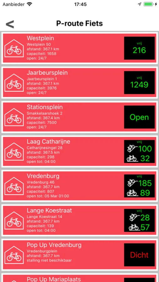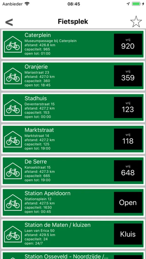 De stallingen staan in volgorde van de afstand tot je huidige locatie.