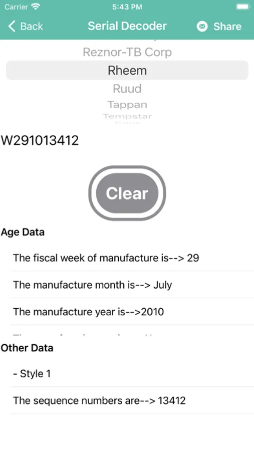 This app will decode the model number nomenclature of most HVAC companies. It has all the major brand names with many thousands of model numbers. It will also decode the serial number for many HVAC companies. It has the ability to email the search results in HTML format via an installed mail client. App is effective at decoding model and serial numbers for packaged units, air conditioners / condensing units, air handlers, evaporator coils, furnaces, heat pumps, boilers, chillers, split systems / mini splits, geothermal systems, and more.