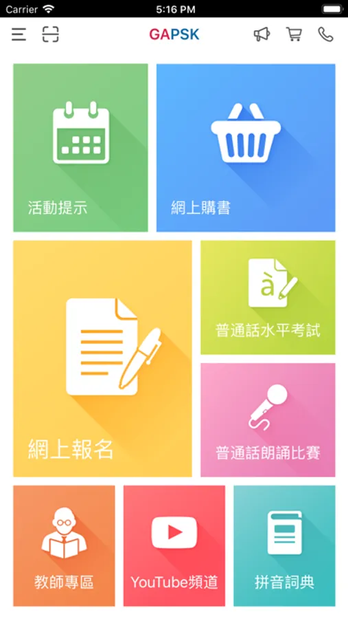 GAPSK在十多年來,一直致力於完善教育服務,舉辦了普通話水平評估、朗誦比賽,講座及交流團等活動,服務超過一千間中小學及幼稚園,參與認證及相關活動的學生超過十萬人。為方便各位支持者,GAPSK於2018年推出全新手機程式,提供一站式免費服務,是家長、老師和學生必備的教育學習應用程式