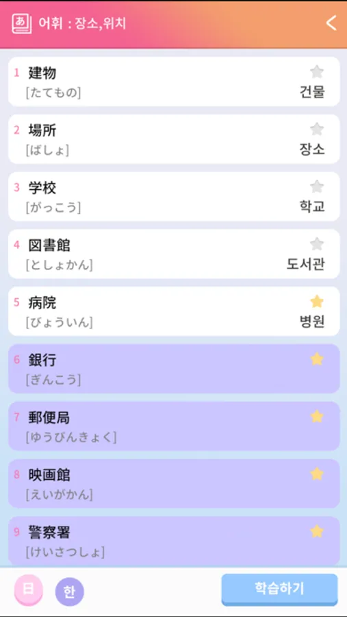 어휘학습에서 등록하였던 단어를 복습할 수 있습니다.