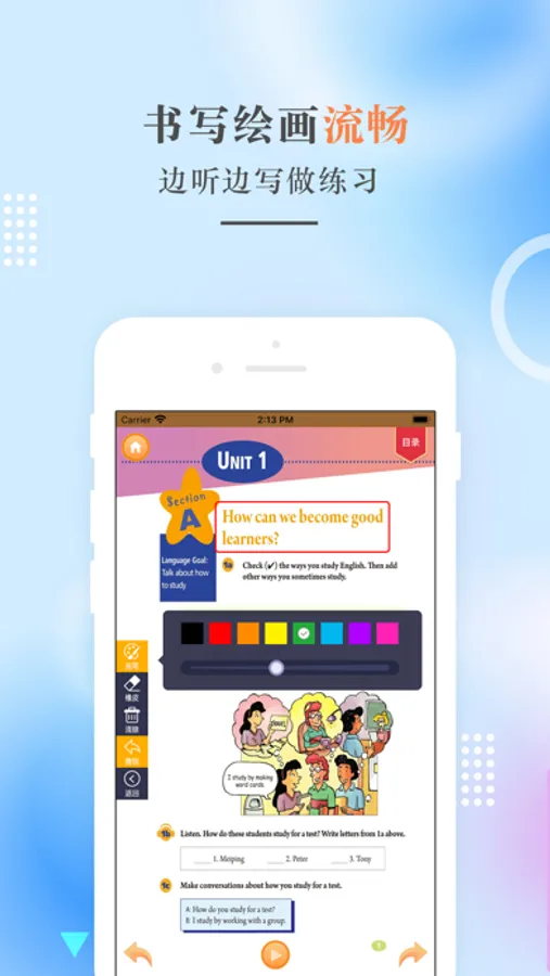 3、能写能画,能点能读,用心帮助孩子学习。