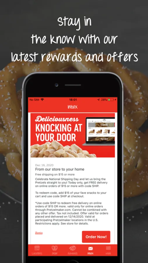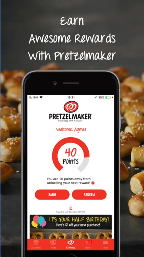 Get a $3 reward once you sign up and make your first purchase at Pretzelmaker. Additional tasty rewards during special holidays, birthdays, anniversaries, and much more! Available at participating locations, the Pretzelmaker app allows you to track your purchases as you spend, earning points towards a $5 rewards and so much more!