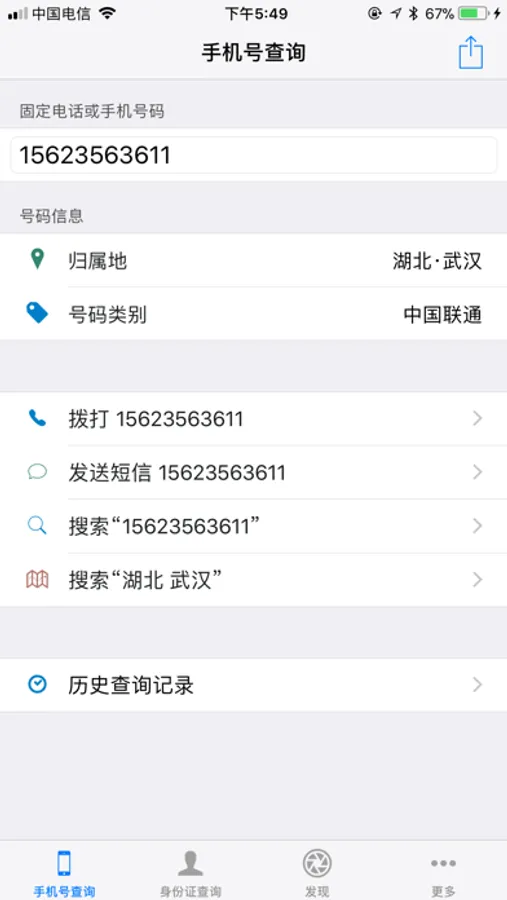 - 手机号码查询,包括归属地、类别(中国移动、联通、电信);还可以根据号码,快速拨打电话、发送短信、搜索归属地。应用自动记录你的查询记录。