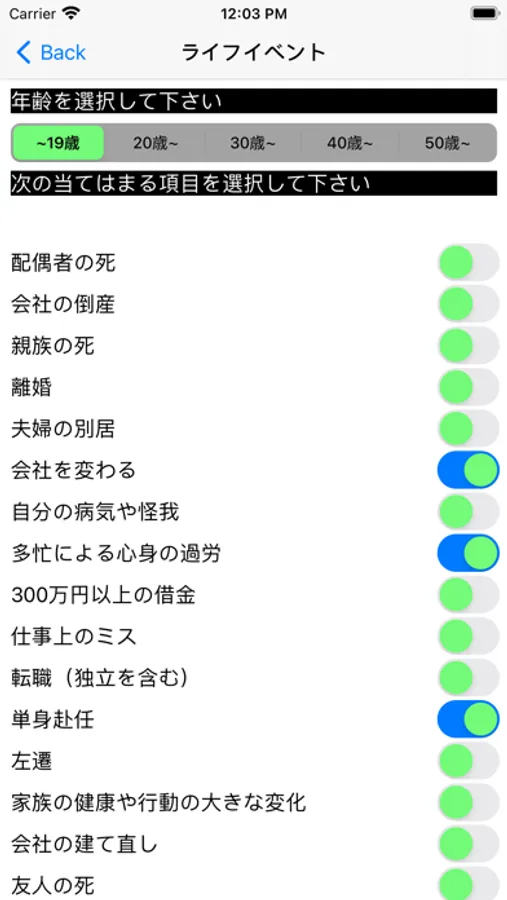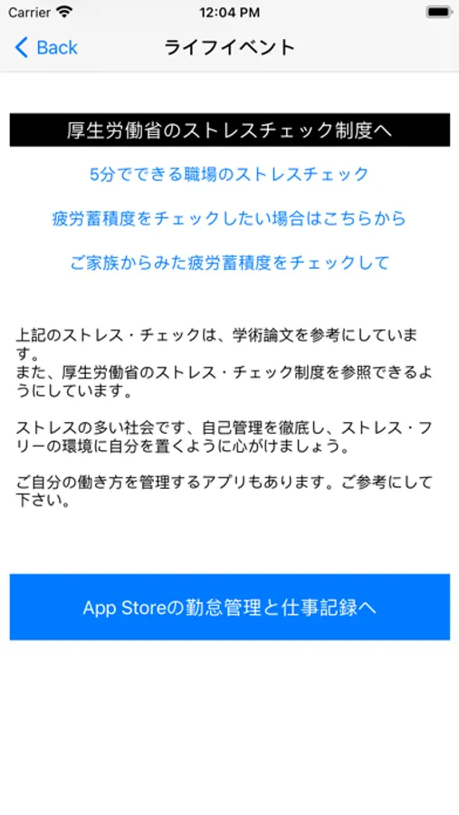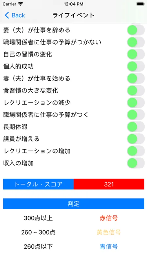 このアプリは、ライフ・イベントによるストレスをスコアによってそのレベルを分析いたします。