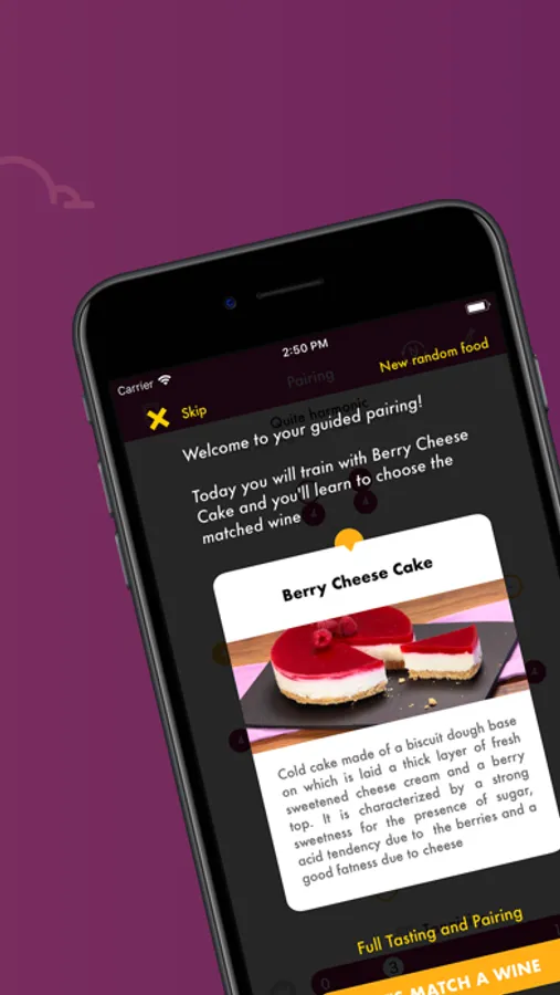 We will suggest you wines of similar body that fit good with your dish and we will guide you composing your first harmonic pairing.