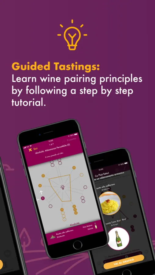 Follow the teachings of the sommelier and learn to perceive the taste-olfactory and tactile food sensations and to associate them to those of the matching wine by adopting the complementary and congruent pairing principles described into the Mercadini methodology.