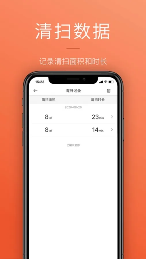 【工作记录】可查看设备清扫面积、清扫时长的数据;