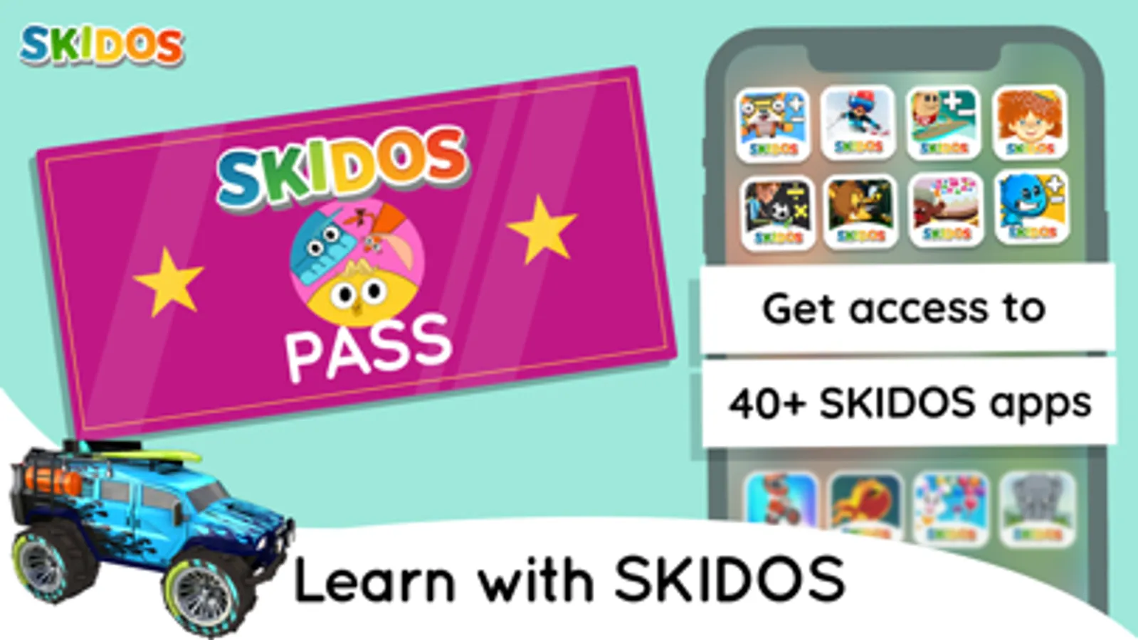 With a single Pass, you access all SKIDOS apps where children of different ages will find games to every taste. You can create up to 6 player profiles within one account and log in from multiple devices. Go ahead and customize the app experience for your kids according to their interests and learning level. Stay on top of how your kids learn - check the progress report in the app or via email.