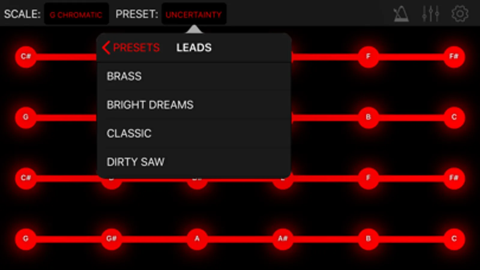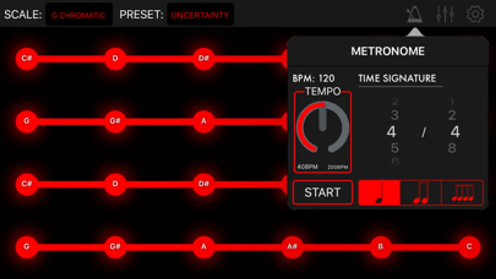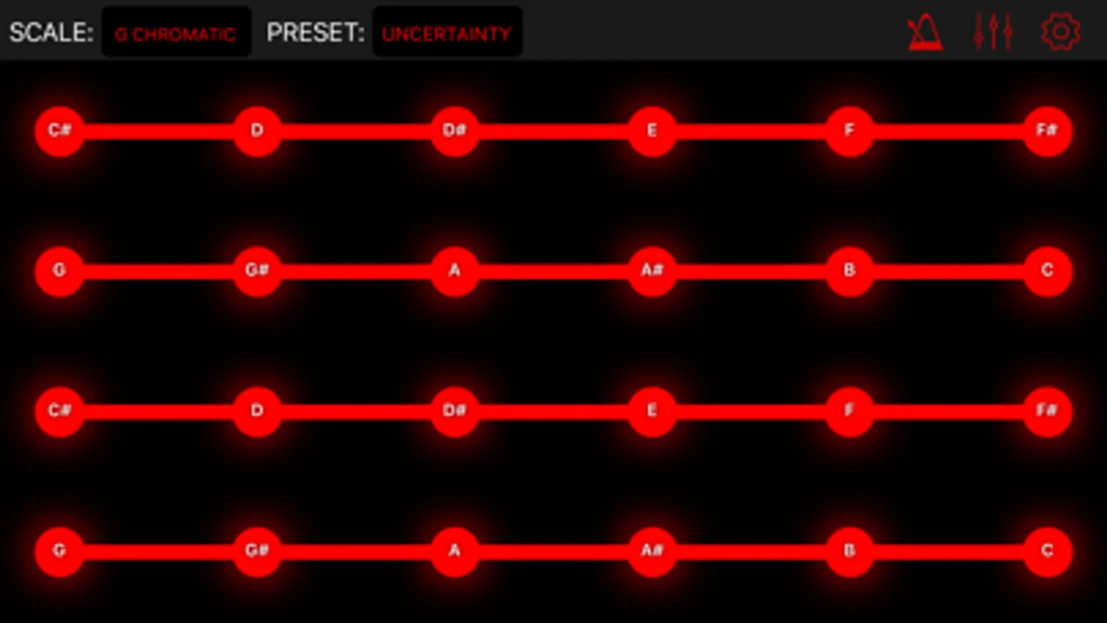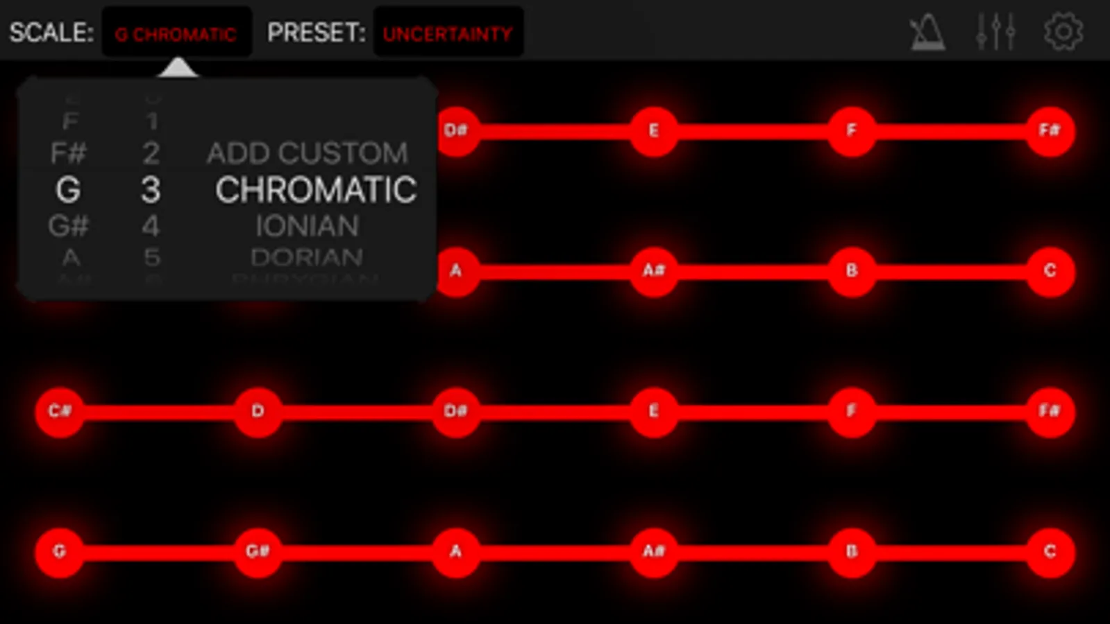 Master of all things musical? Modulin's got you covered again. You can change the root note, octave, and type of scale that Modulin uses. If you feel really confident, you could even turn off the note names in the settings and try to memorize where everything is.