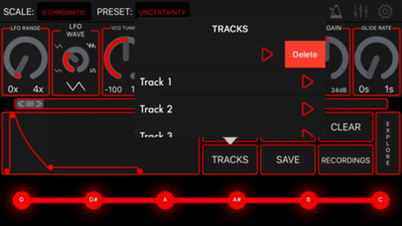 Modulin truly is the complete package for channeling your inner-composer. It can even record and store your works of art. A record button allows you to lay down a beat and overwrite it with complex melodies. The tracks button allows you to manage your tracks as you add them.