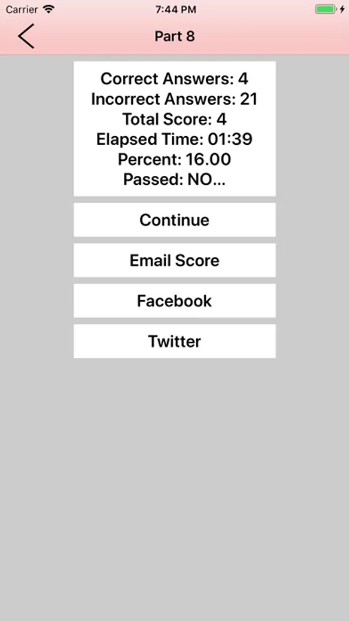 * Capability to quickly share quiz score via e-mail, Twitter, and Facebook