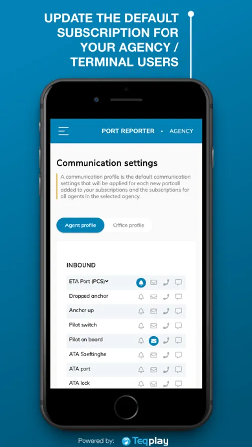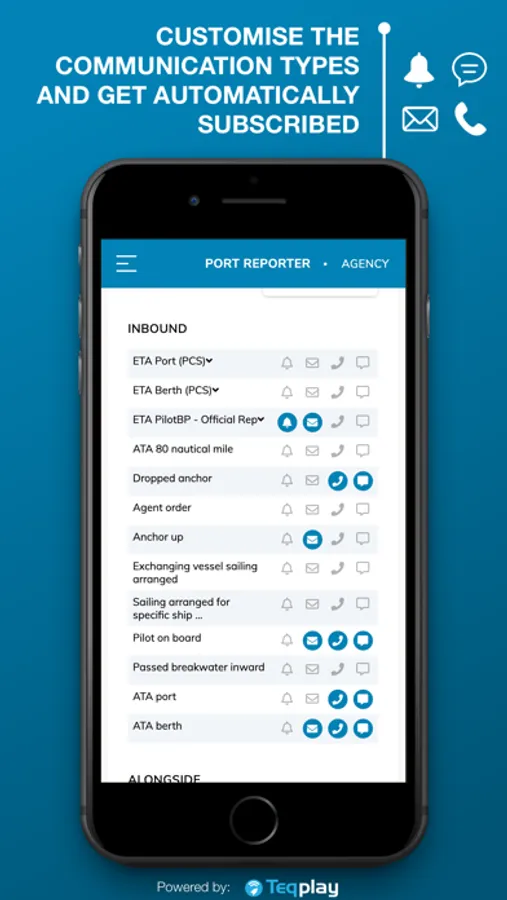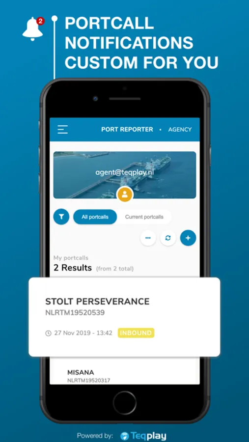 Port Call Reporting at hand: Port Reporter is the app for the port community to be up to date on the actual status of the port call. Configure all relevant events for the visiting, shifting, along-side operations and departing sea vessels and receive notifications, per e-mail, phone, sms or push messages. Providing insight for port call optimization.