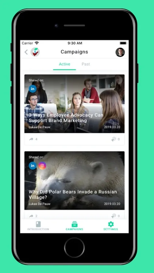 3. Bada-bing! Now you can see the active campaigns you've received and share the ones you love!
