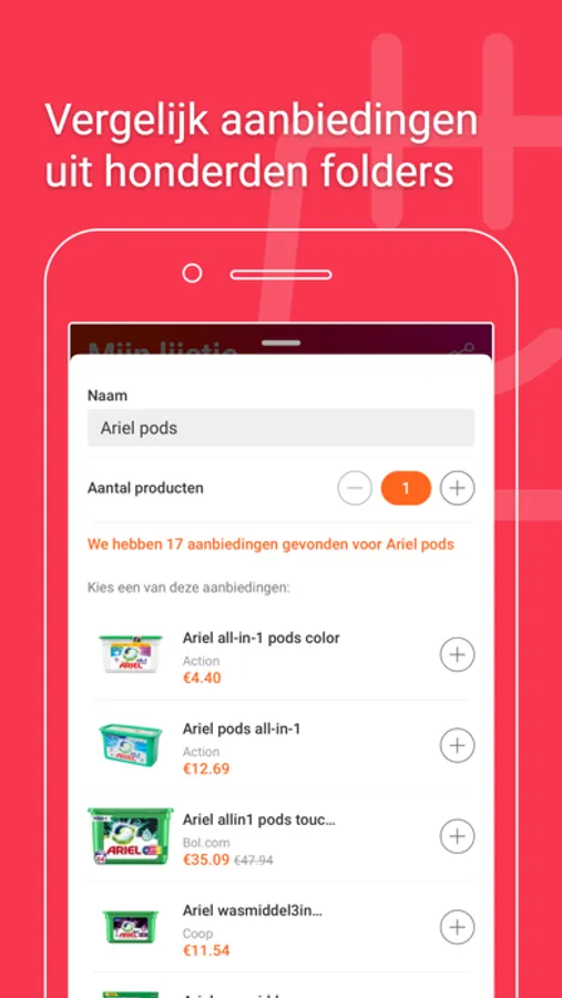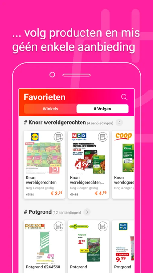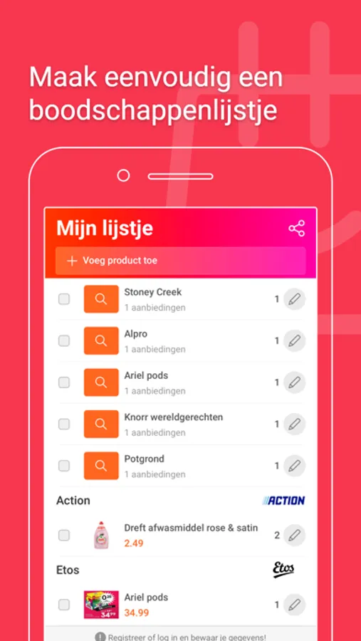 - Opslaan van aanbiedingen en maken eigen boodschappenlijstje.