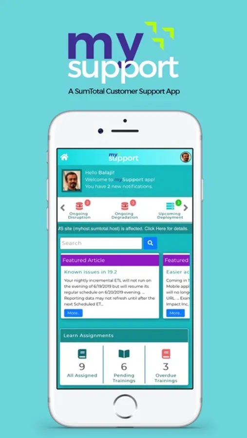 The SumTotal mySupport app provides all support and service information in a single, one-stop-shop application.