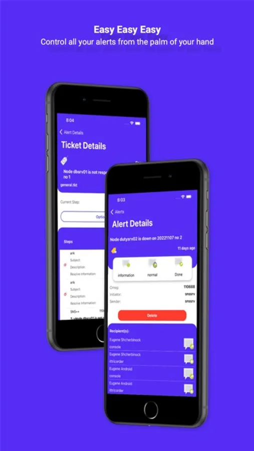 Receive and manage alerts, escalations and tickets on your mobile for complete control. You can even keep important incident data on your phone for as long as needed.