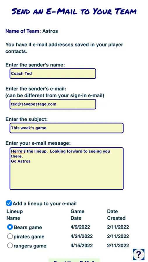 Paid memberships are just $9.95 per team for unlimited lineups through April, 2024!
